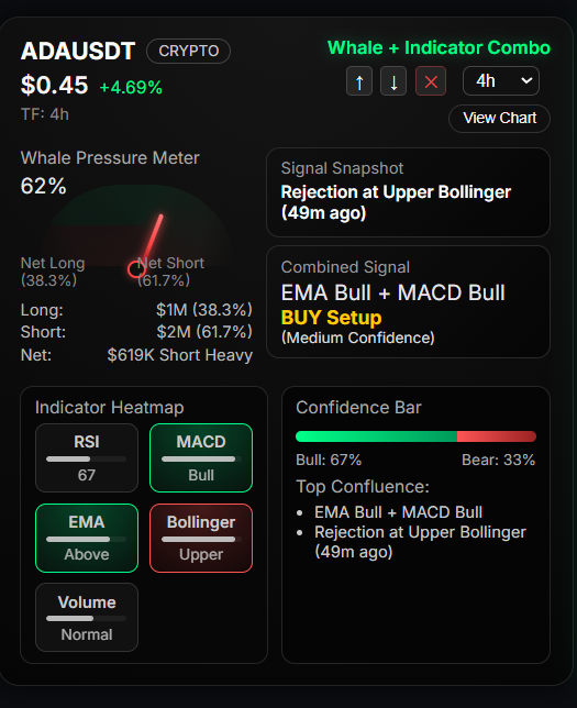 • Cardano: Whales are leaning long with bullish indicator strength.